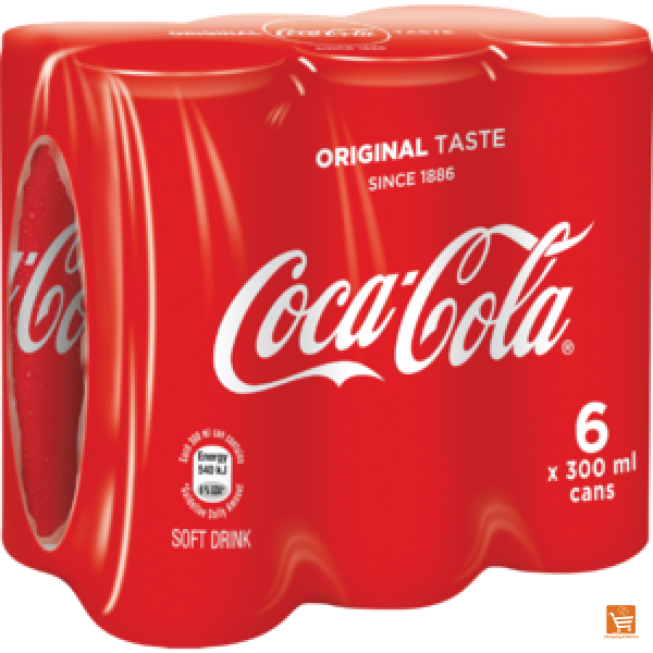 Experience the iconic refreshment of Coca-Cola Original in a convenient 6-pack of 300ml cans. With its unmistakable taste and perfect fizz, Coca-Cola is the classic soft drink enjoyed around the world.