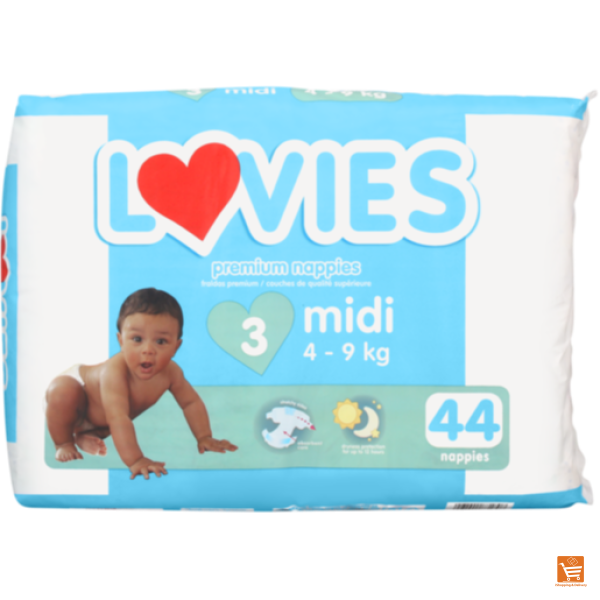 Lovies Midi Size 3 4-9kg Premium Nappies 44 Pack